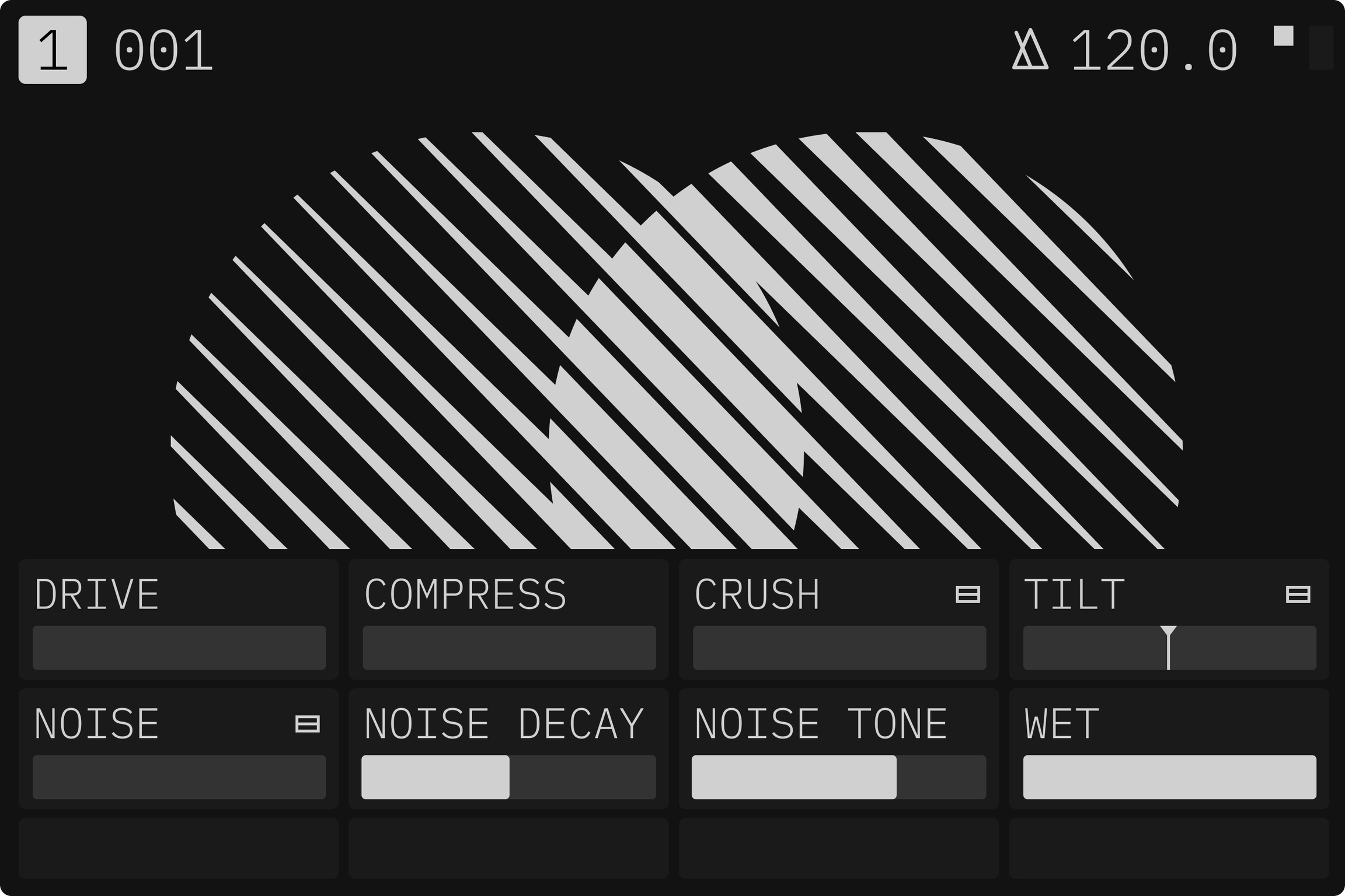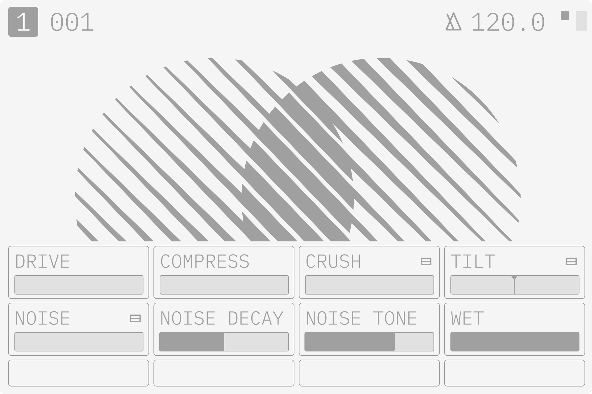 NOISE TONE このパラメーターは、ノイズ アルゴリズムに適用されるバンドパス フィルタのカットオフ周波数を制御します。