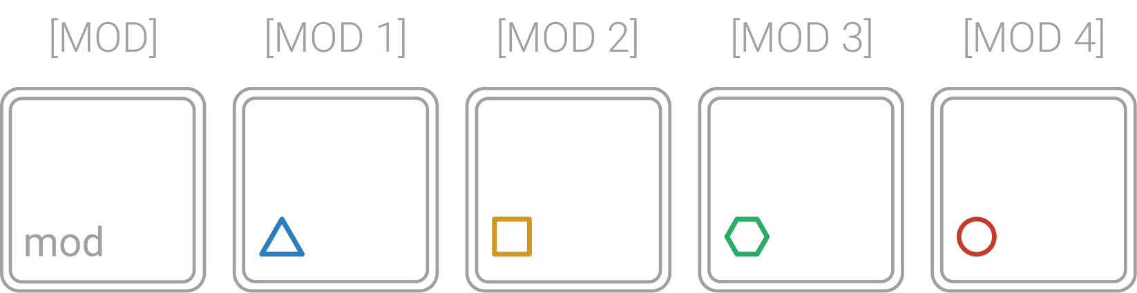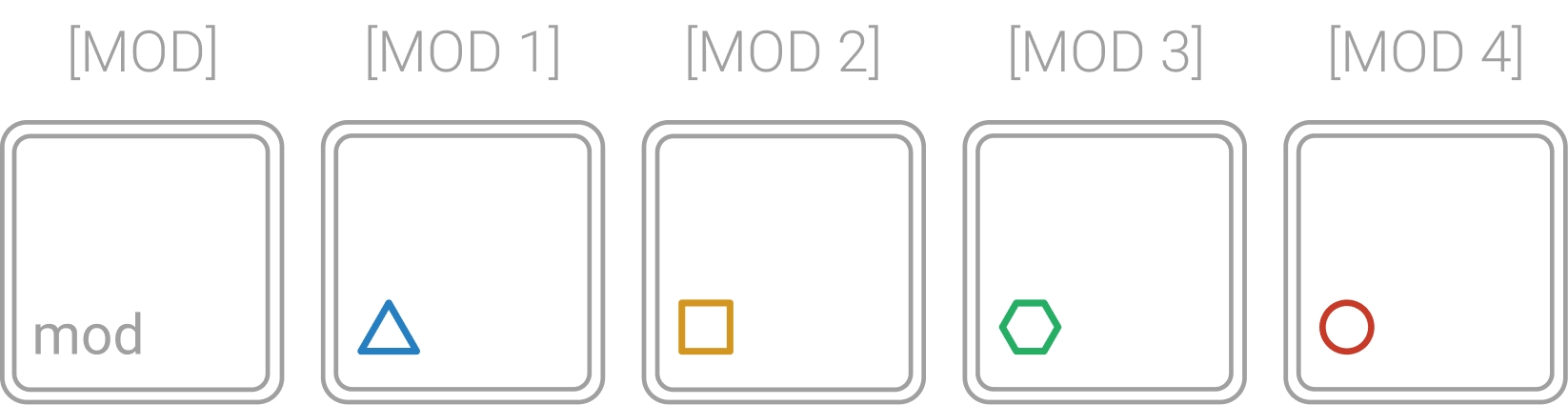 これらの色は、グループ内の各モジュレーターを表すためにインターフェイス全体で一貫して使用され、モジュレーターが属するスロットを識別するのに役立ちます ([ACTION] ボタンと一緒に)。