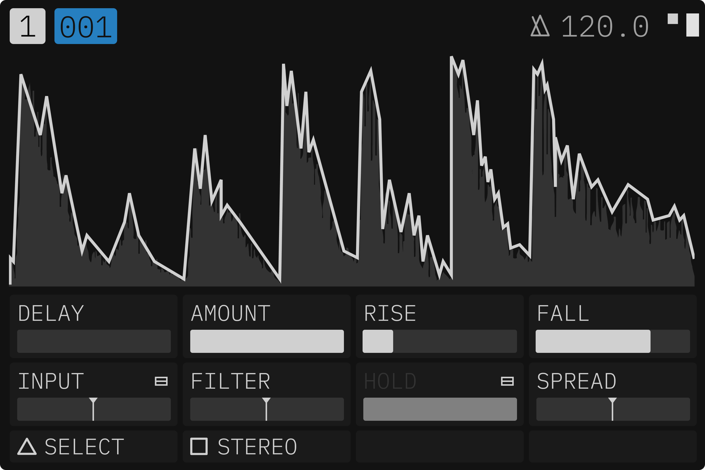 FOLLOWモジュレーターは、内部または外部オーディオに直接反応し、振幅に基づいてモジュレーションを形成します。ダッキング、ポンピング、リアクティブフィルタリングなど、ダイナミックでレスポンシブなエフェクトを、完璧に同期して作成できます。
