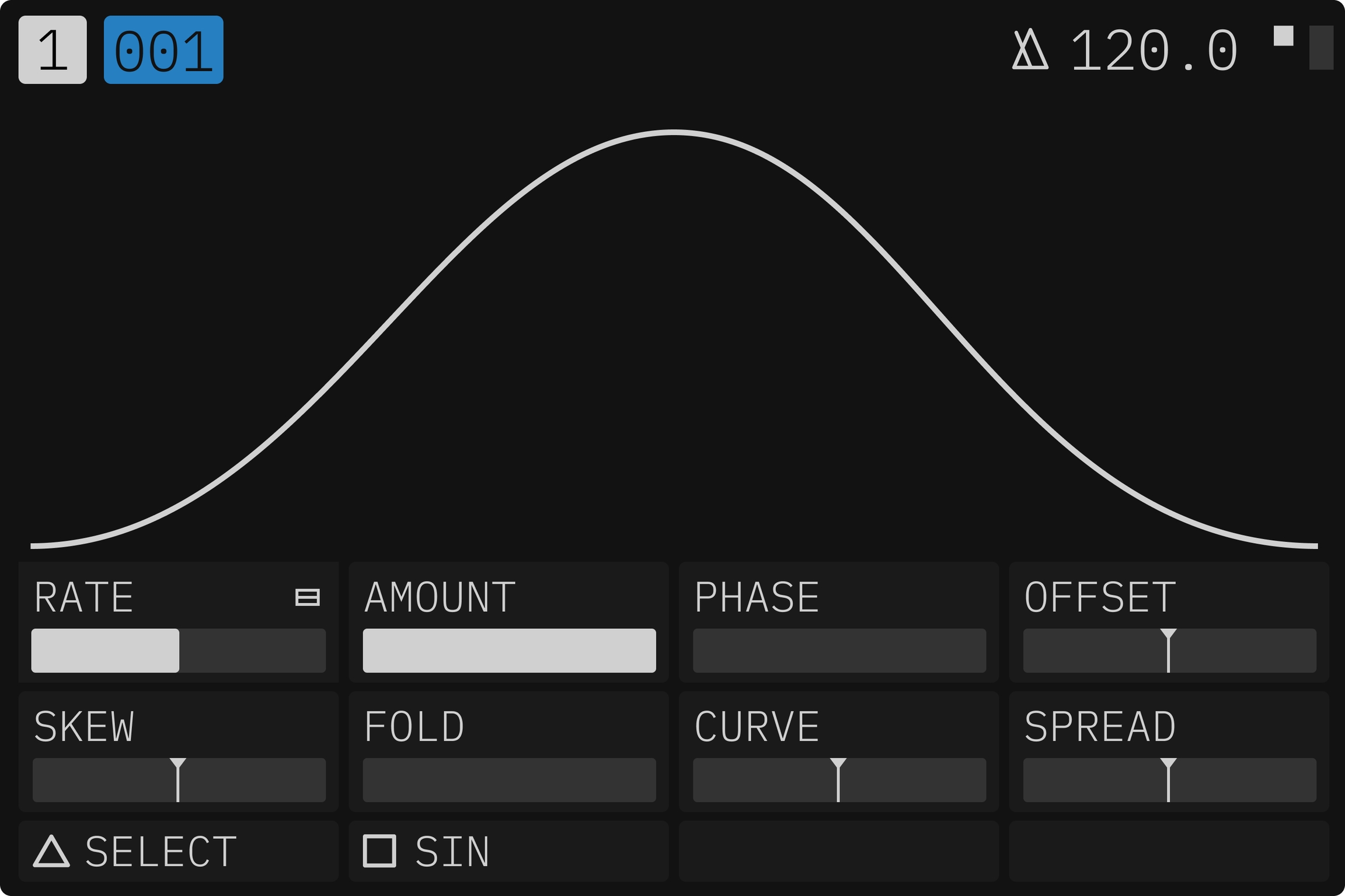 FOLD モジュレーションのウェーブフォールディング量を調整し、新たなピークと谷を動的に生成します。