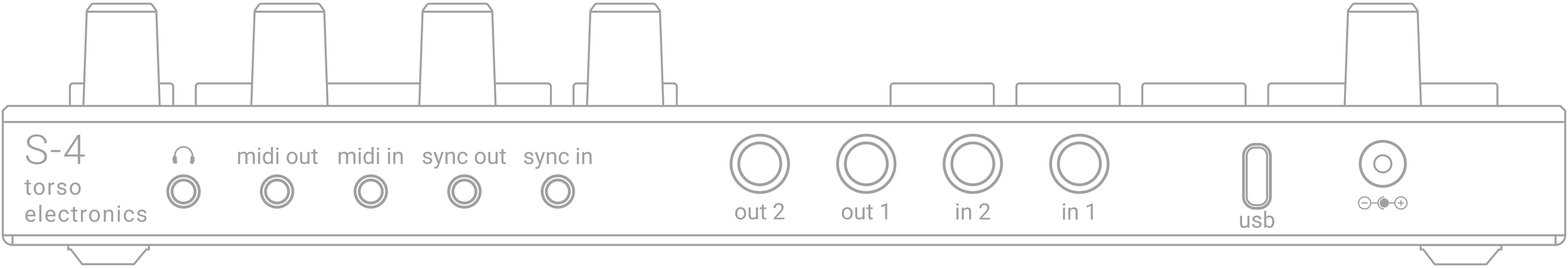 出力:6.3 mm (1/4インチ) ジャック x 2、3.5 mm TRSヘッドフォンジャック