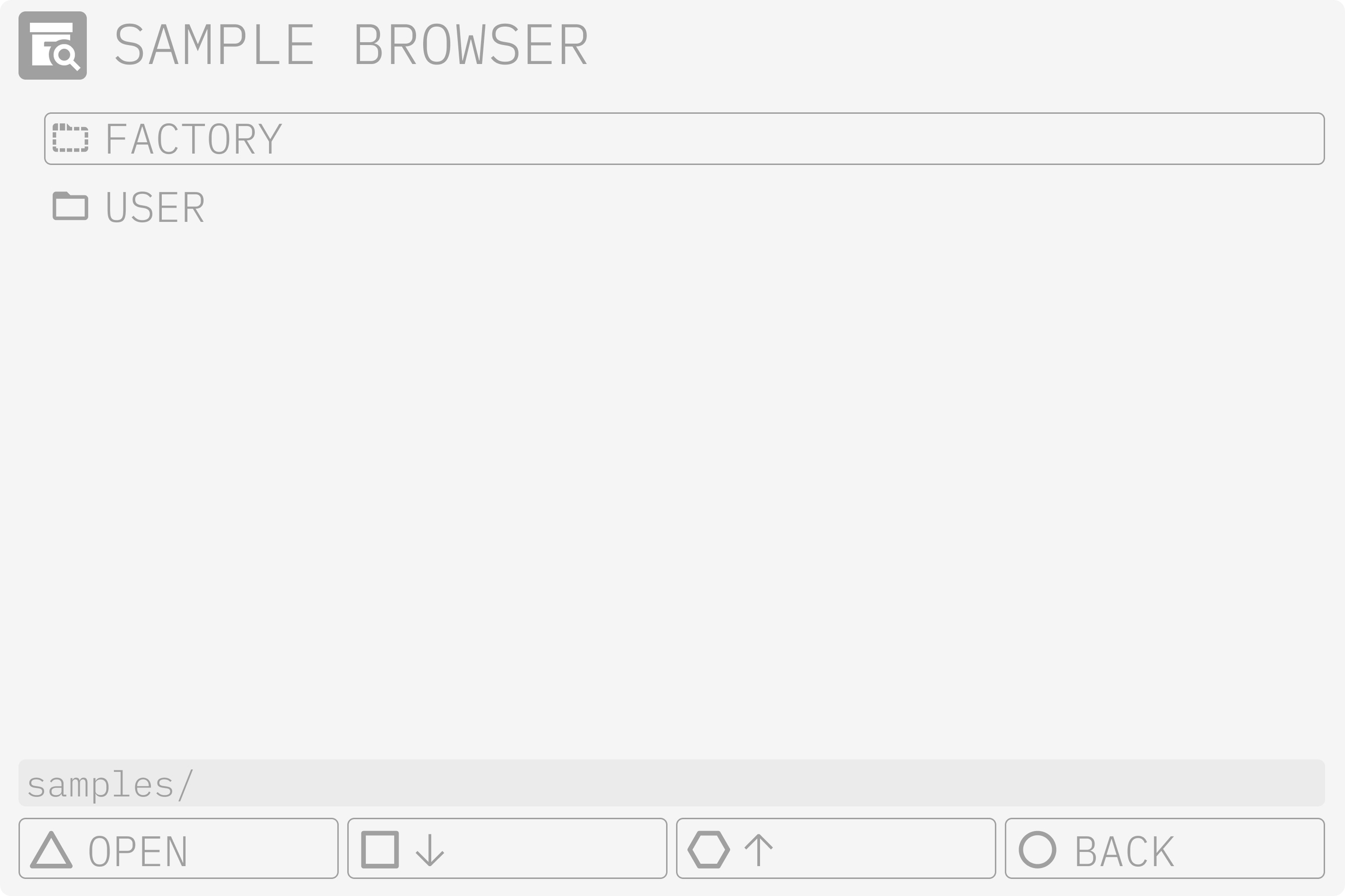 サンプルブラウザは、内部ストレージと外部ストレージ(接続されている場合)の両方に保存されているサンプルの概要を表示します。サンプルブラウザは、Material Devicesからサンプルをロードする際にもアクセスできます。利用可能なサンプルの概要を表示するだけでなく、サンプルブラウザにはサンプルプレビュー機能も搭載されており、あらゆるサンプルをシームレスにモニタリングできます。