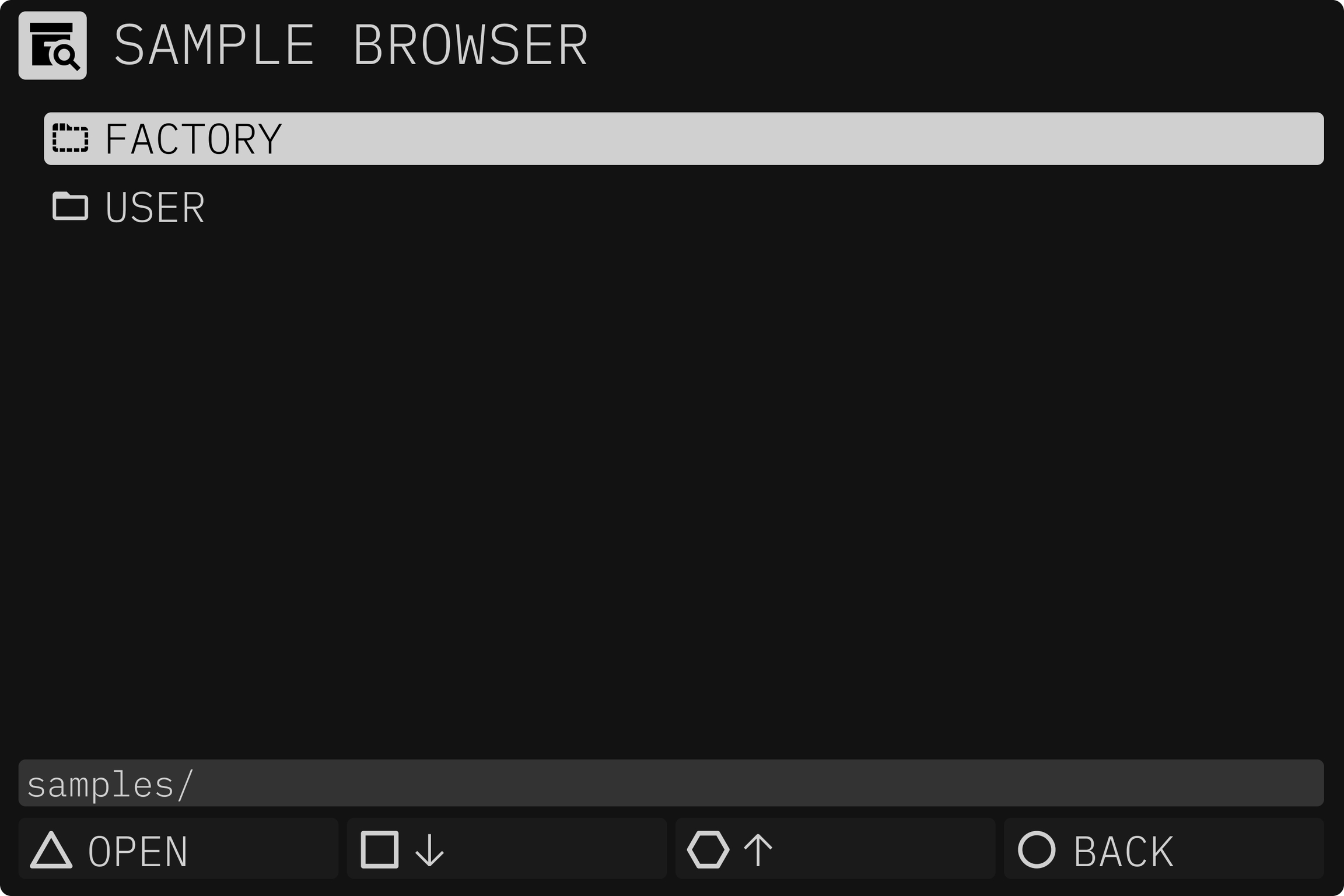 [CTRL] を押しながら [PLAY] を押し続けるとサンプルをプレビューできます。